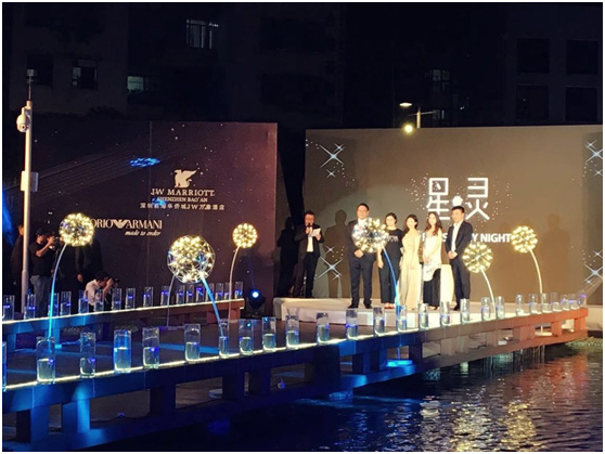 2016年8月6日晚19:00,深圳前海华侨城JW万豪酒店联袂意大利奢侈品牌安普里奥阿玛尼 (Emporio Armani) 、宝安海雅缤纷城及知名婚庆公司好百年,于海雅缤纷城正门广场呈现“星•灵”主题户外夏季高定婚纱首秀。